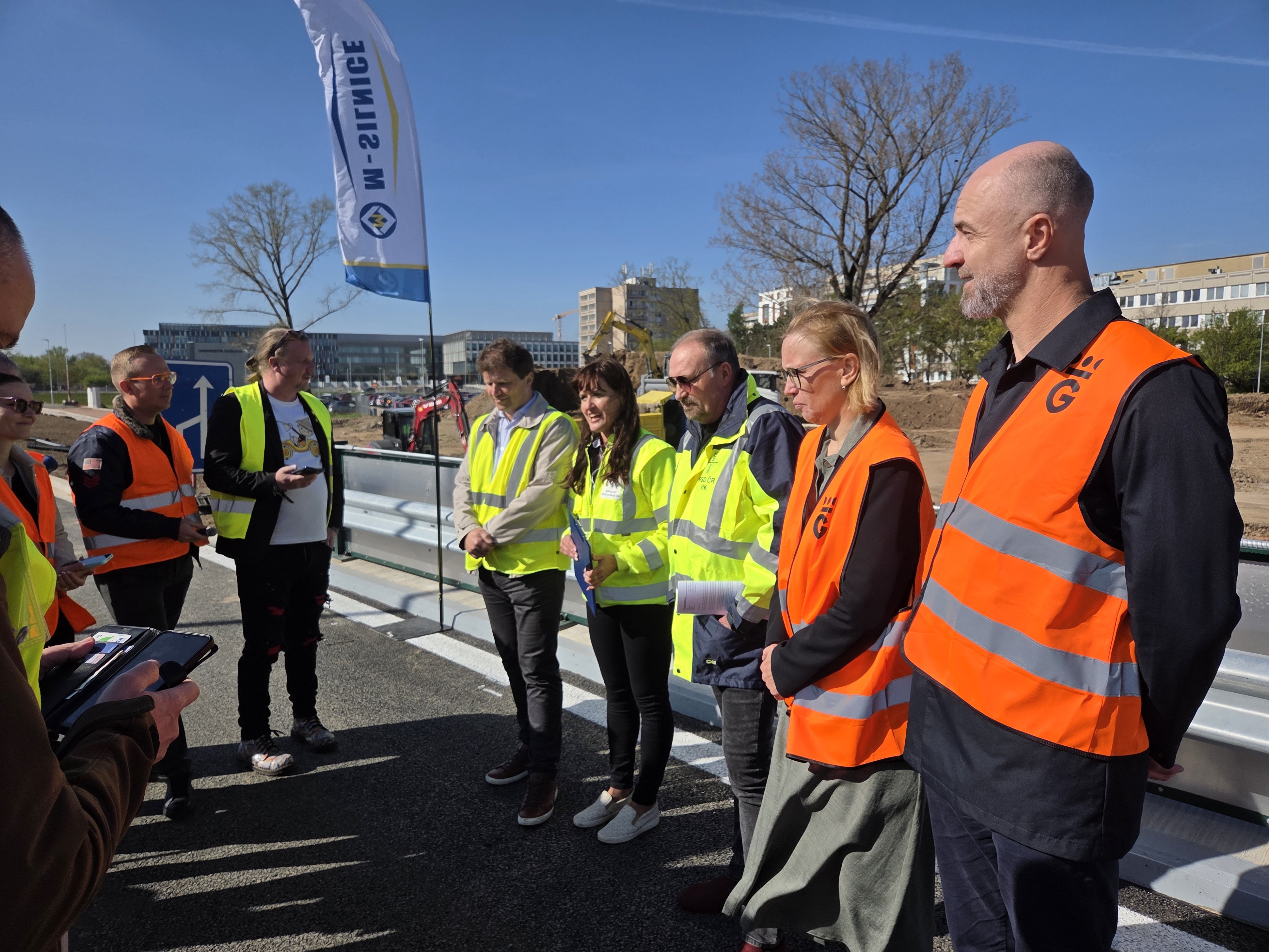 Na tiskovém brífinku ŘSD ČR, který proběhl v pátek 24. 4. 2026, zaznělo poděkování všem zúčastněným za urychlení prací, jak ze strany ředitele správy Hradec Králové, Ing. Marka Novotného, tak ze strany primátorky města Mgr. Pavlíny Špringerové, Ph.D.