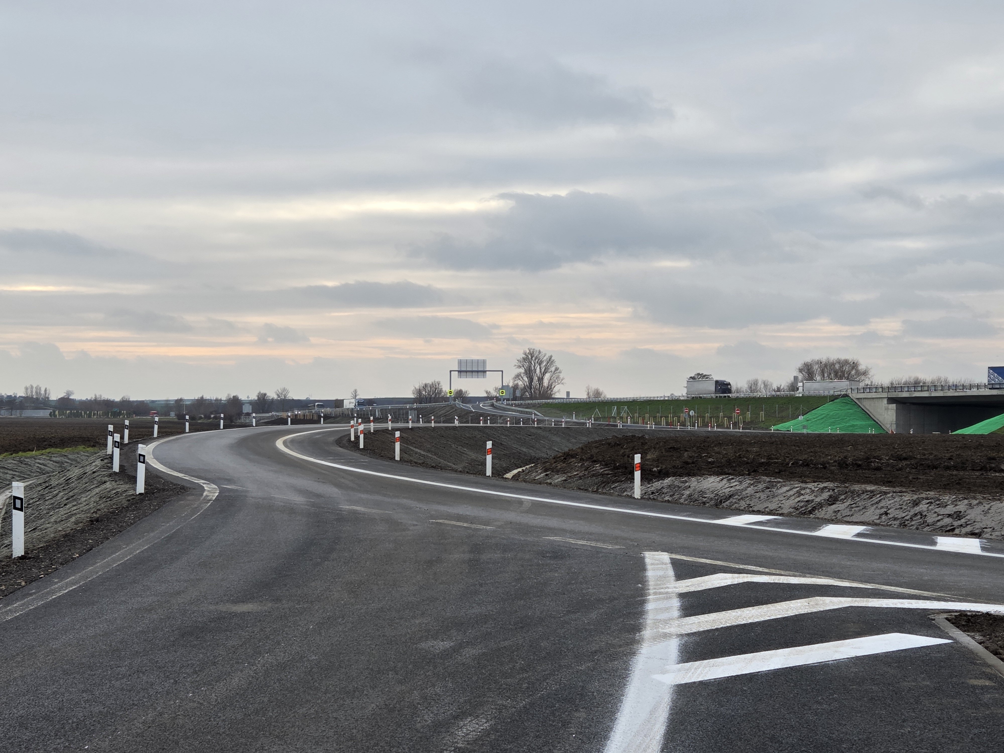 Prvním z objektů, který byl dokončen a uveden do provozu, byl dálniční nadjezd mezi Křelovem a Topolany. Ten byl zprovozněn již 18. 5. 2025.