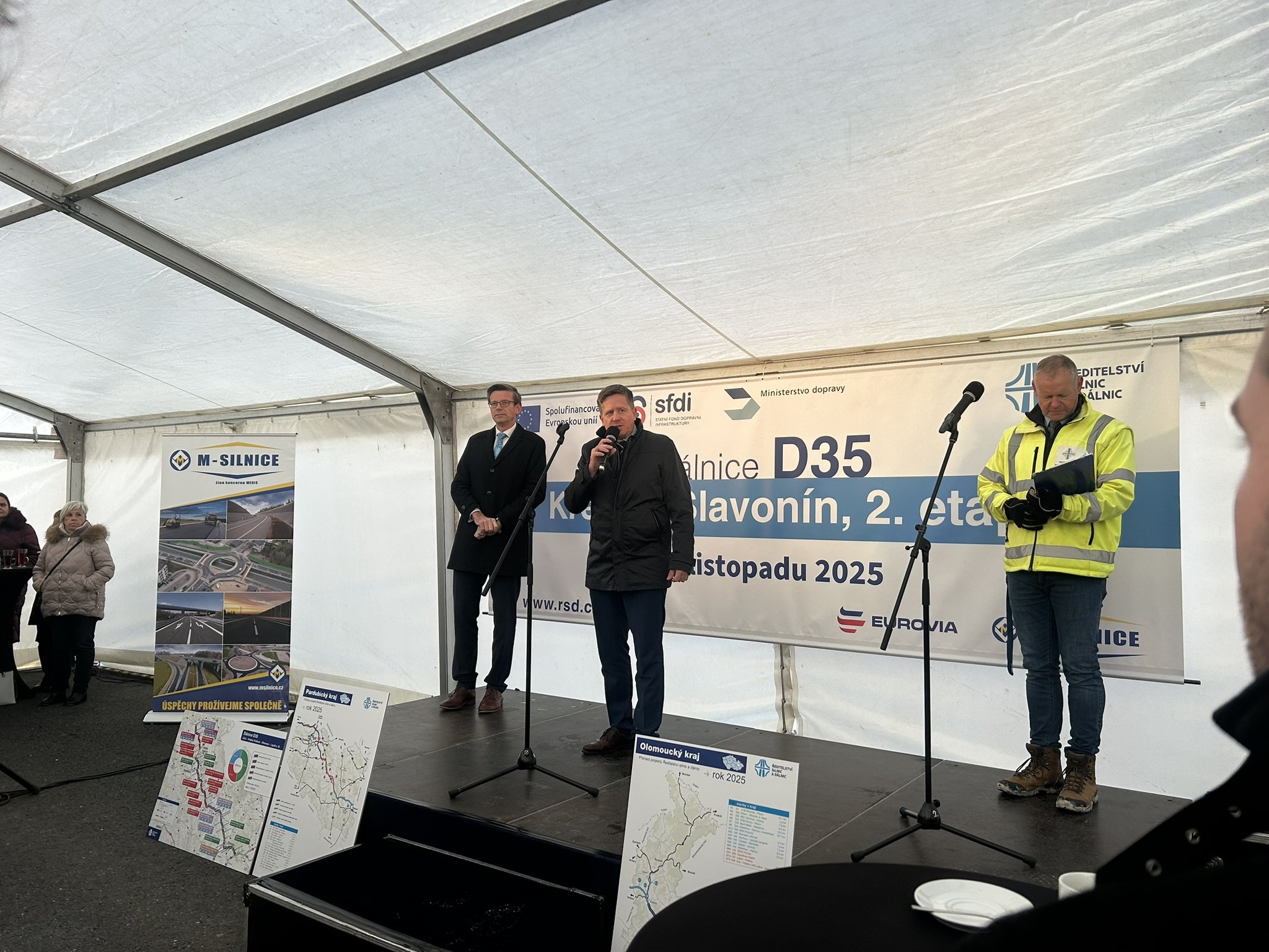 Slavnostní zprovoznění nového úseku dálnice D35 mezi Křelovem a olomouckou městskou částí Slavonín se uskutečnilo ve čtvrtek 20. listopadu 2025. K otevření došlo o 158 dní dříve oproti smluvnímu termínu.